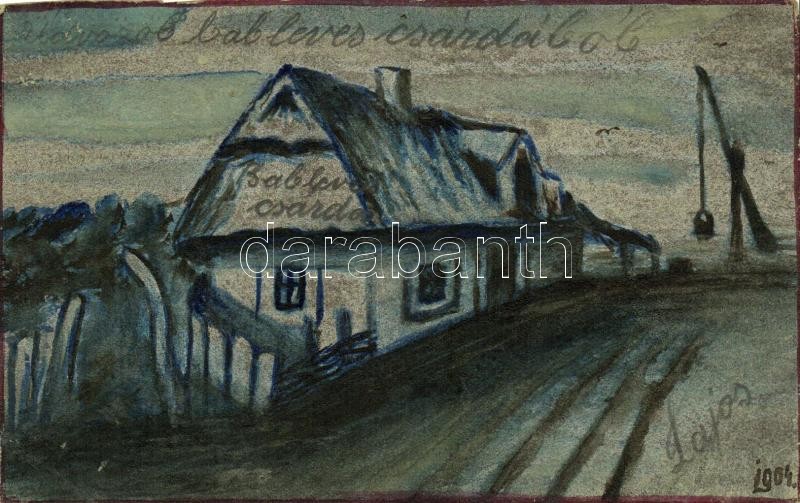 Beschreibung: 1904 Aszód, Bableves csárda - saját kézzel festett képeslap / hand-painted postcard s: Lajos (EB)