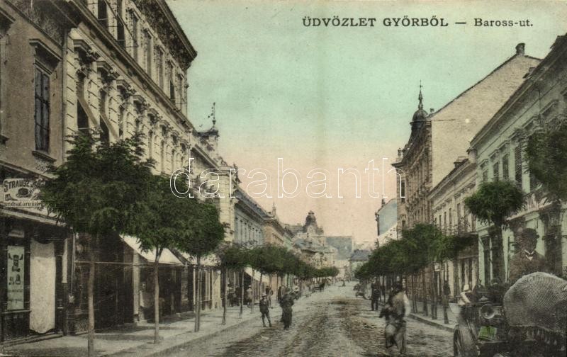 1908 Győr, Baross út, Strausz üzlete. Kiadja Nitsmann József (EK) https://www.darabanth.com/de/359-Fernauktion/359.0/Ansichtskarten/Ungarn~1000004/1908-Gyor-Baross-ut-Strausz-uzlete-Kiadja-Nitsmann-Jozsef-EK~II2064958