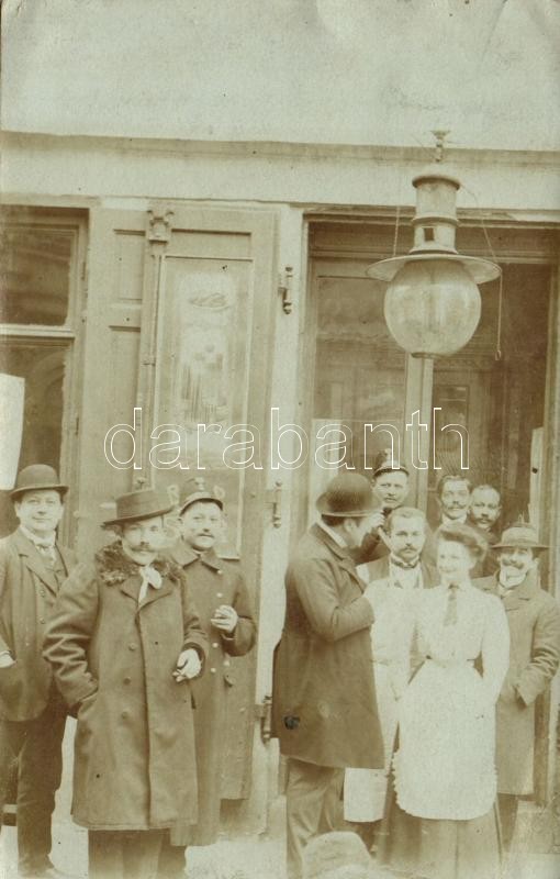 1909 Budapest, vendéglő előtti csoportkép. photo (EK) https://www.darabanth.com/de/359-Fernauktion/359.0/Ansichtskarten/Ungarn~1000004/1909-Budapest-vendeglo-elotti-csoportkep-photo-EK~II2066016