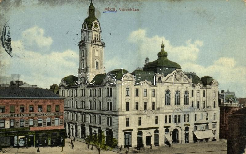 1915 Pécs, Városháza, Steiner Simon férfi szabó üzlete, Gyógyszertár (... https://www.darabanth.com/de/359-Fernauktion/359.0/Ansichtskarten/Ungarn~1000004/1915-Pecs-Varoshaza-Steiner-Simon-ferfi-szabo-uzlete-Gyogyszertar-fl~II2066741