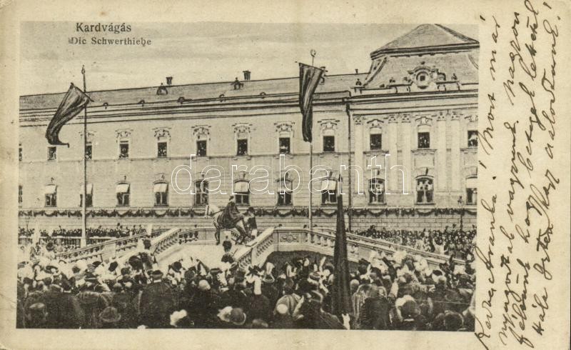 1917 Budapest, IV. Károly királlyá koronázása, A kardvágás / Die Schwe... https://www.darabanth.com/de/359-Fernauktion/359.0/Ansichtskarten/Ungarn~1000004/1917-Budapest-IV-Karoly-kirallya-koronazasa-A-kardvagas-Die-Schwerthiebe~II2063198