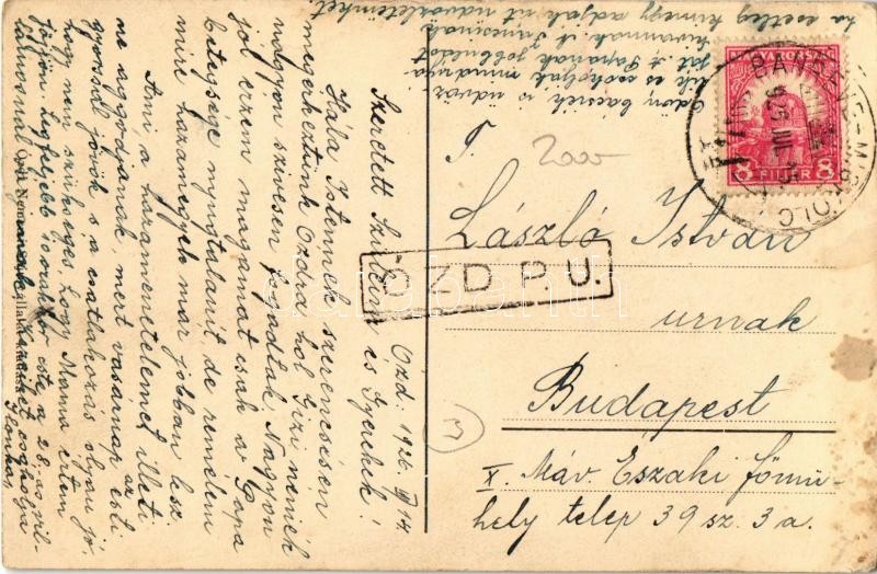 Beschreibung: 1926 Ózd, a Martin mű anyagszállító darui, rakodódaruk, iparvasút, vagonok + Bánréve-Miskolc 41. vasút pecsét (EK)