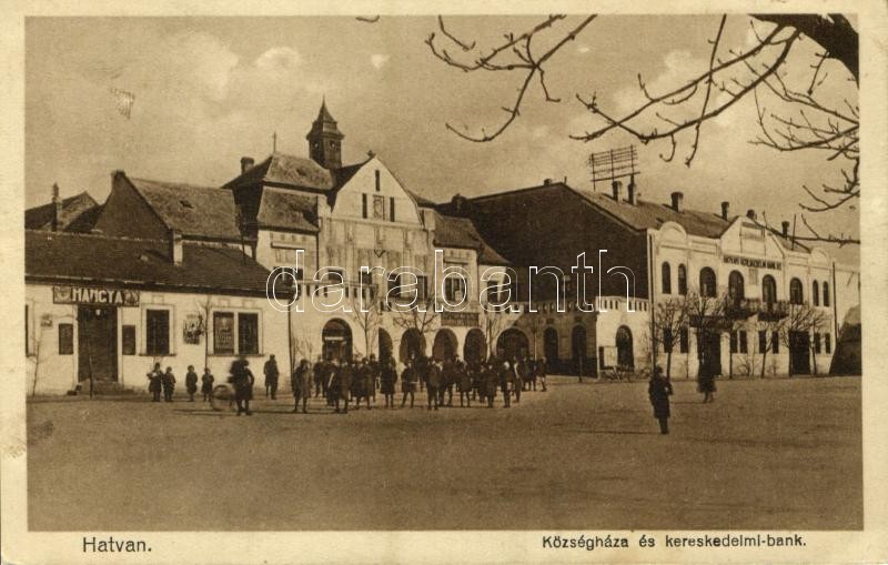 Beschreibung: 1928 Hatvan, Községháza, Kereskedelmi bank, Hangya üzlet