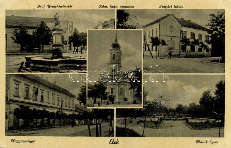 1941 Elek, Gróf Wenckheim tér, Római katolikus templom, Polgári iskola... https://www.darabanth.com/de/359-Fernauktion/359.0/Ansichtskarten/Ungarn~1000004/1941-Elek-Grof-Wenckheim-ter-Romai-katolikus-templom-Polgari-iskola-Nagyvendeglo-etterem~II2062688
