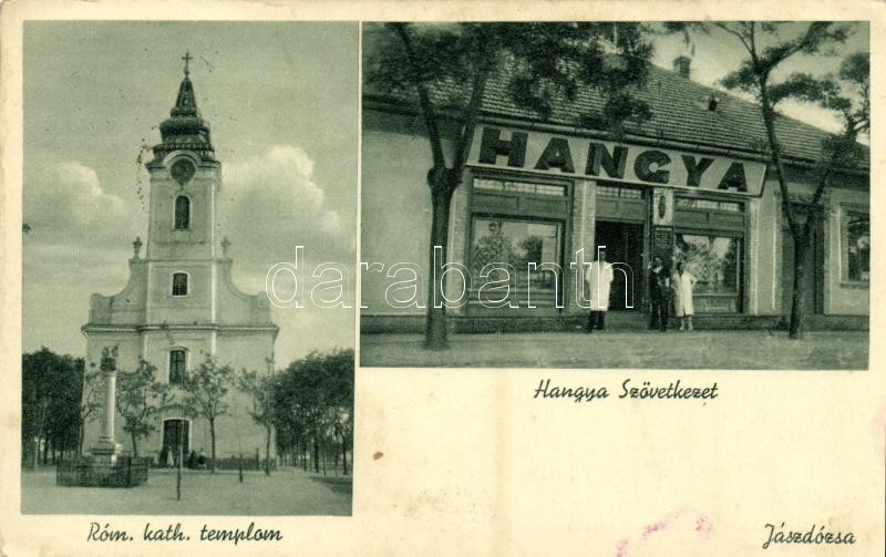 1941 Jászdózsa, Római katolikus templom, Hangya Szövetkezet üzlete és ... https://www.darabanth.com/de/359-Fernauktion/359.0/Ansichtskarten/Ungarn~1000004/1941-Jaszdozsa-Romai-katolikus-templom-Hangya-Szovetkezet-uzlete-es-sajat-kiadasa-Rb~II2066138