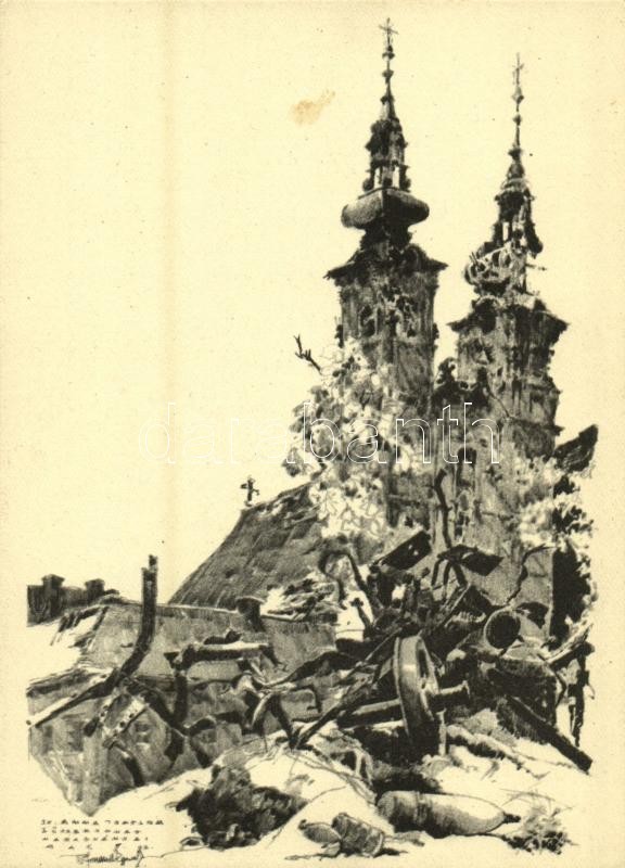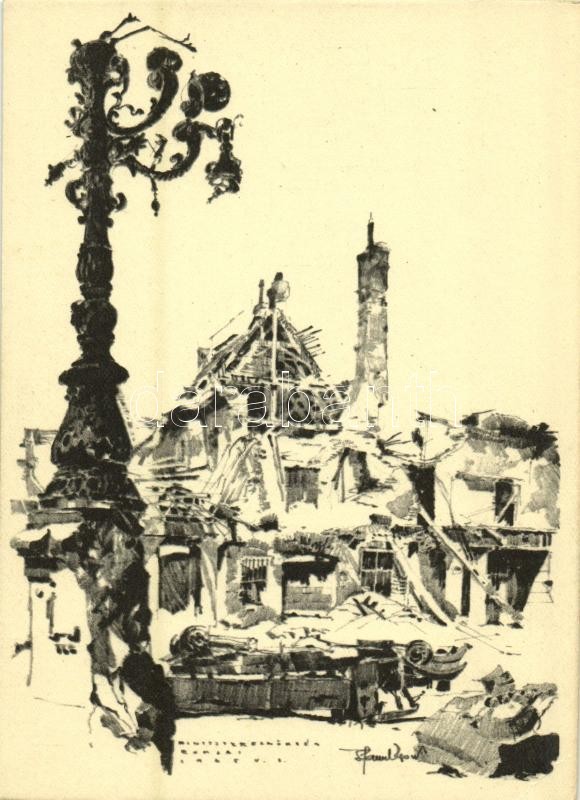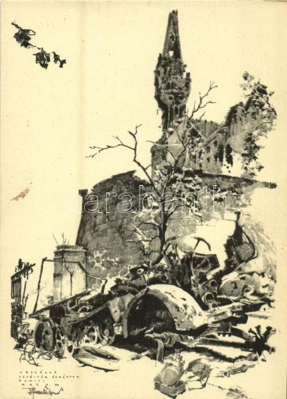 1945 Budapest - 4 db városképes lap a második világháború utáni romokról / 4 town-view postcards of the ruins and destruction in the city after WWII s: Pfannl Egon