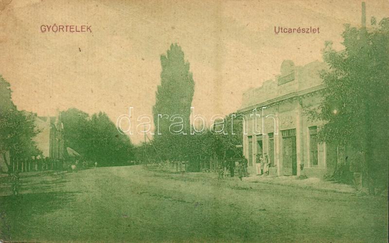 Beschreibung: Győrtelek, utca, szövetkezet üzlete és saját kiadása (EB)