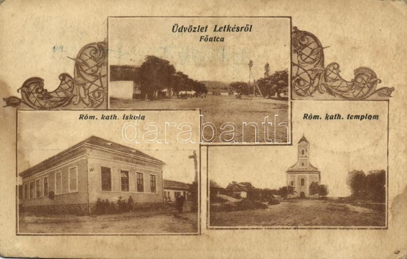 Letkés, Római katolikus templom és iskola, Fő utca (fl) https://www.darabanth.com/de/359-Fernauktion/359.0/Ansichtskarten/Ungarn~1000004/Letkes-Romai-katolikus-templom-es-iskola-Fo-utca-fl~II2062430