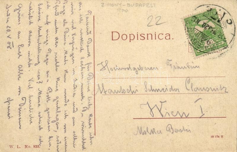 1908 India, Indija; Bahnhof Gasse / Kolodvor ulica / Vasút utca, piaci árusok, templom. W. L. No. 833. / street view, market vendors, church + "ZIMONY - BUDAPEST 17 C" vasúti mozgóposta bélyegző (EK)