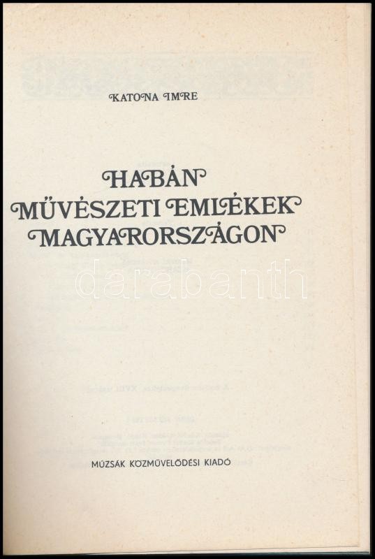 Katona Imre: Habán művészeti emlékek Magyarországon. Bp., é.n., Múzsák Közművelődési Kiadó. Színes és fekete-fehér képekkel illusztrált. Kiadói papírkötés, jó állapotban;