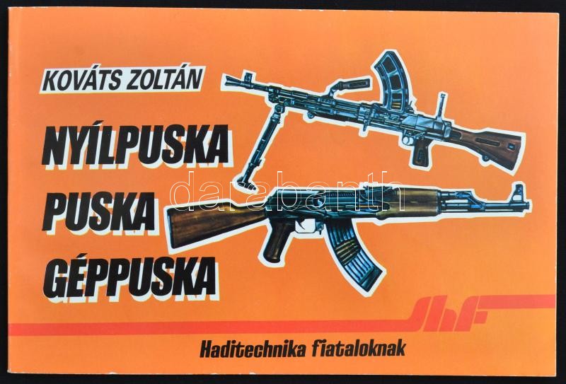 Beschreibung: Kováts Zoltán / Nagy István: Kézi lőfegyverek. Típuskönyv. Bp., 1986, Zrínyi Katonai Kiadó. + Kováts Zoltán: Nyílpuska, puska, géppuska. Kiadói kartonálás