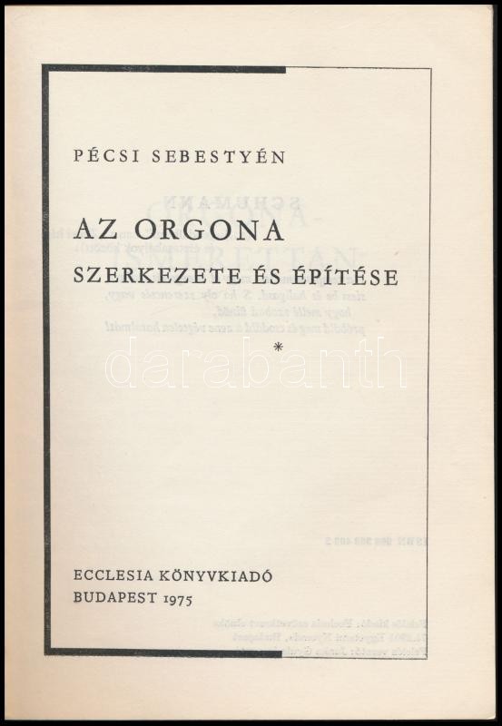 Pécsi Sebestyén: Az orgona szerkezete és építése. Bp.,1975, Ecclesia. ... https://www.darabanth.com/de/359-Fernauktion/359.0/Bucher/Bucher-Technik~1500015/Pecsi-Sebestyen-Az-orgona-szerkezete-es-epitese-Bp-1975-Ecclesia-Fekete-feher-fotokkal~II2063033