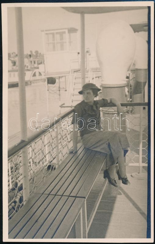 1935 Hölgy a Szent István hajó fedélzetén, fotólap, 13×8,5 cm https://www.darabanth.com/de/359-Fernauktion/359.0/Fotografie/Foto~500021/1935-Holgy-a-Szent-Istvan-hajo-fedelzeten-fotolap-13C3978-5-cm~II1998404