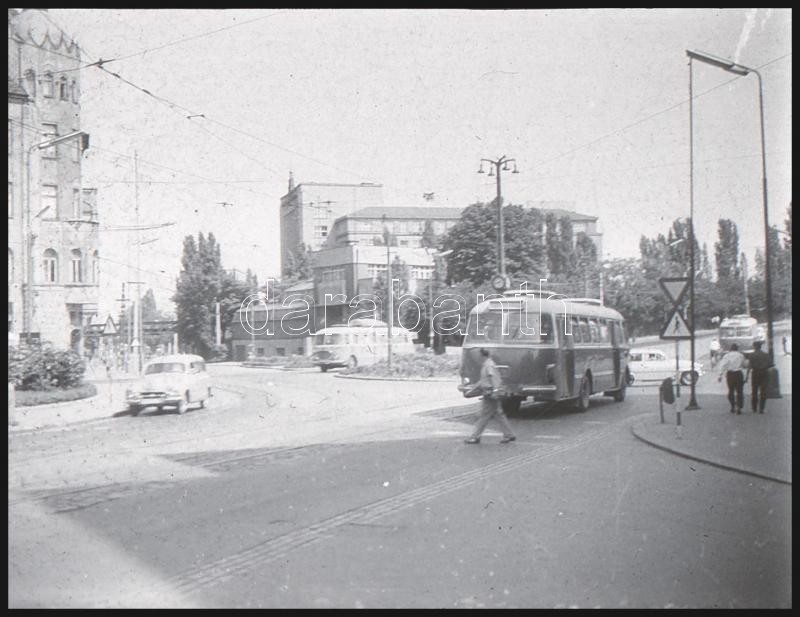 cca 1960 Pozsonyi villamosok, 9 db vintage felvétel (1 db fotó + 8 db diapozitív), Fekete György (1904-1990) budapesti fényképész hagyatékából, 24x36 mm és 9x12 cm