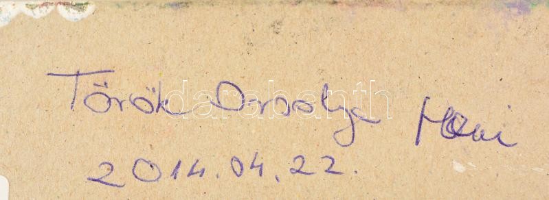 Beschreibung: Török Orsolya (1976-2018): Heni. Vegyes technika, karton. Jelzett. 35x50 cm