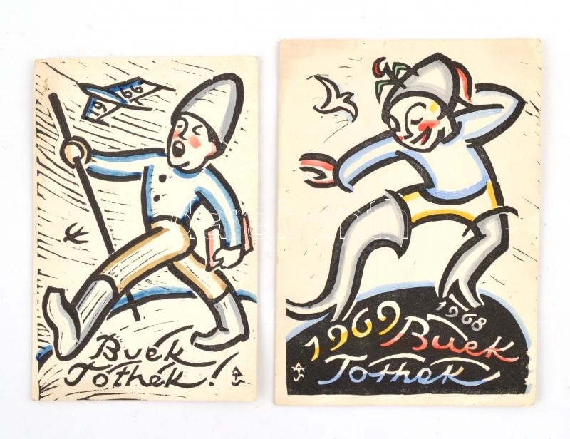 A. Tóth Sándor (1904-1980): Újévi üdvözlőlapok. 2 db fametszet, egyike... https://www.darabanth.com/de/359-Fernauktion/359.0/Gemalde-und-Grafiken/Gemalde-und-Grafiken~500001/A-Toth-Sandor-1904-1980-Ujevi-udvozlolapok-2-db-fametszet-egyiken-sajat-kezirassal-~II2061516