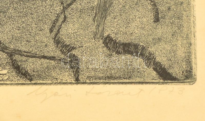 Beschreibung: Nyári Lóránt (1928-1982): Horányi sziget. Rézkarc, papír, jelzett, üvegezett keretben, 33×50 cm