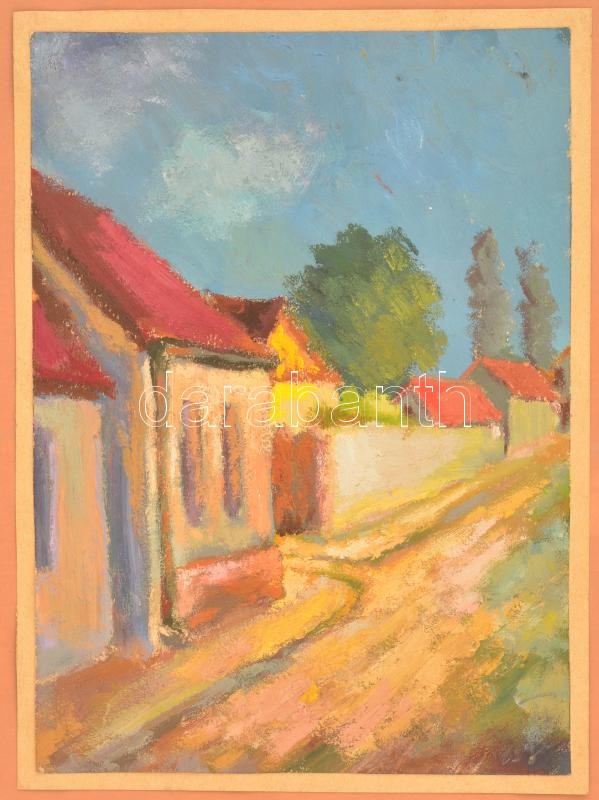 Beschreibung: Olvashatatlan jelzéssel: Utcarészlet. Tempera, papír, 22×16 cm