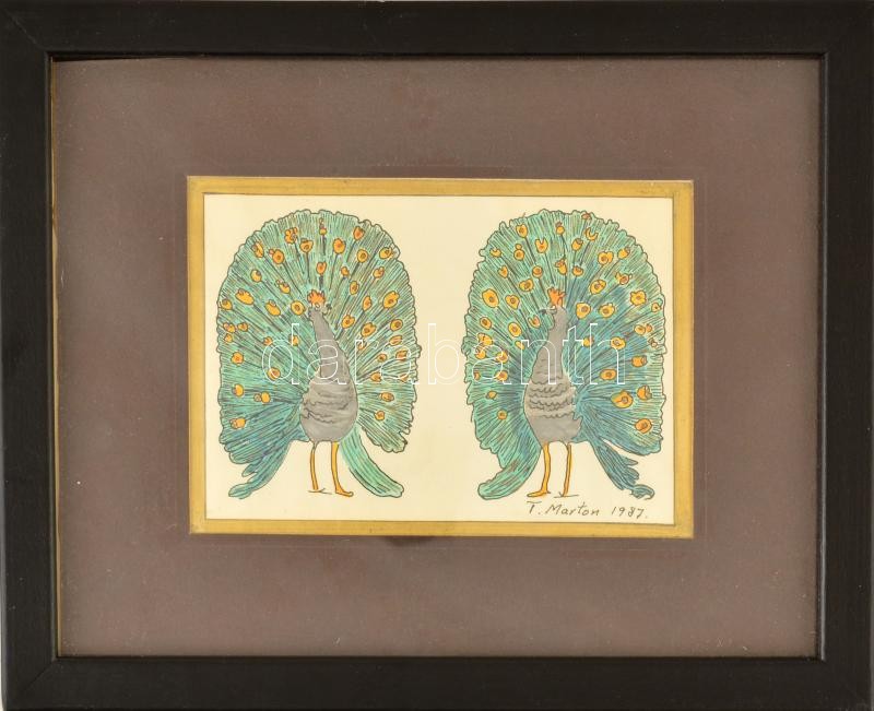 Tutzi Marton (1936-) Pávák. Akvarell, papír. Jelzett, 12x15 cm Üvegeze... https://www.darabanth.com/de/359-Fernauktion/359.0/Gemalde-und-Grafiken/Gemalde-und-Grafiken~500001/Tutzi-Marton-1936-Pavak-Akvarell-papir-Jelzett-12x15-cm-Uvegezett-keretben~II2066309