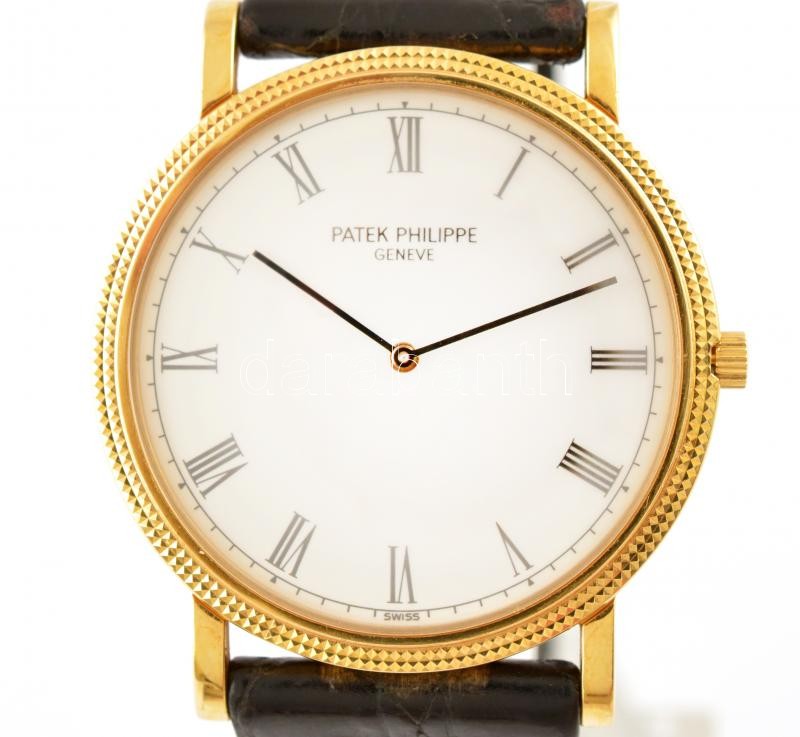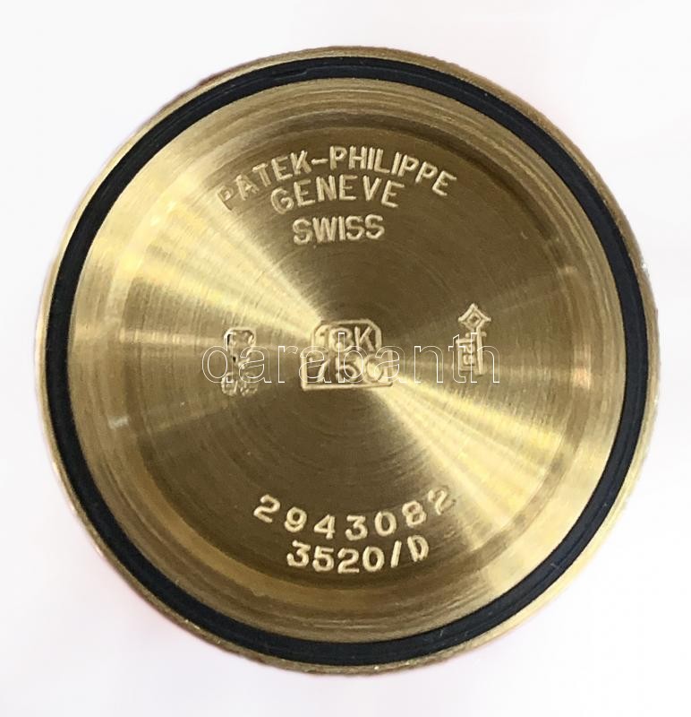 Patek Philippe Calatrava kézi felhúzós 18K arany óra Cal 177, 3520/D Jelzett, működő, jó állapotban, eredeti bőr szíjjal. Hátlapján egy karc. Sorszám 2943082