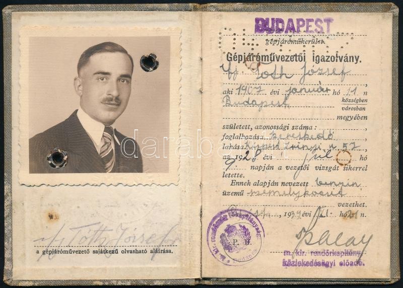 1927-1928 Magyar Királyság fényképes útlevele kereskedő részére, osztrák bejegyzéssel.+1939 Valamint ugyanennek a személynek a fényképes gépjárművezetői igazolványa.
