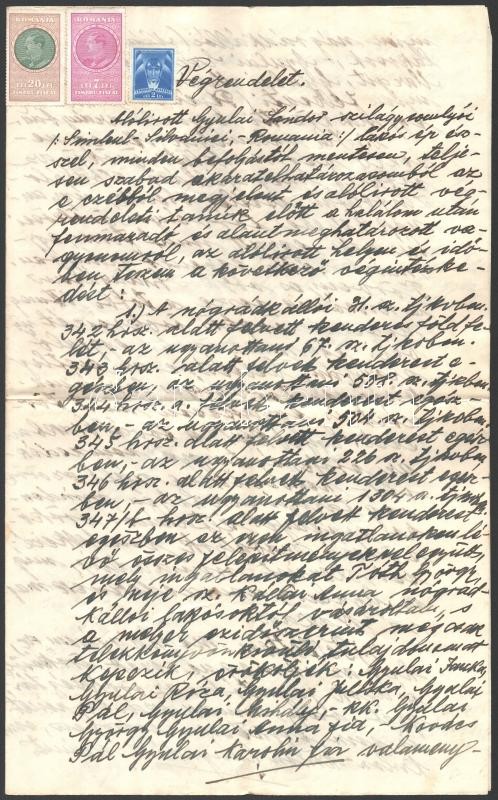 Beschreibung: cca 1900-1930 Szilágysomlyó Gyulay család dokumentumai: peres irat, bizonyítvány, össz 4 db
