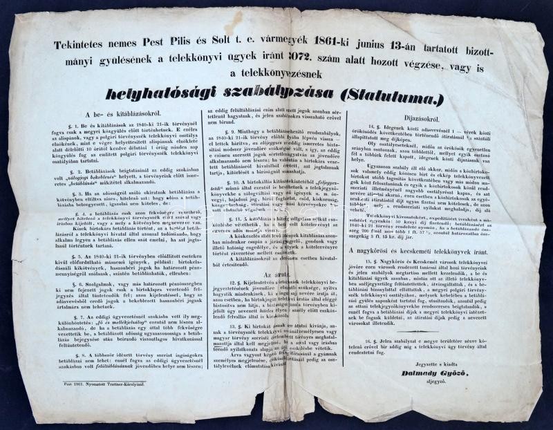 1861 Pest, Telekkönyvezés helyhatósági szabályozásával kapcsolatos hir... https://www.darabanth.com/de/359-Fernauktion/359.0/Kunst-Dokumente-andere-Sammelgebiete/Drucksachen~500030/1861-Pest-Telekkonyvezes-helyhatosagi-szabalyozasaval-kapcsolatos-hirdetmeny~II2065191