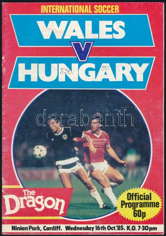 1985 A Wales-Magyarország labdarúgó mérkőzés (0:3) műsorfüzete https://www.darabanth.com/de/359-Fernauktion/359.0/Kunst-Dokumente-andere-Sammelgebiete/Drucksachen~500030/1985-A-Wales-Magyarorszag-labdarugo-merkozes-03-musorfuzete~II2066992