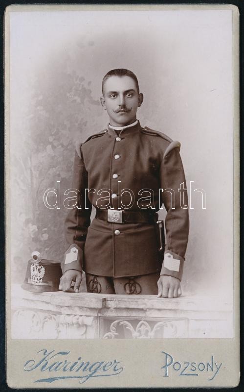 cca 1895 Katona műtermi portréja, keményhátú fotó Karinger pozsonyi mű... https://www.darabanth.com/de/359-Fernauktion/359.0/Kunst-Dokumente-andere-Sammelgebiete/Militaria~500028/cca-1895-Katona-mutermi-portreja-kemenyhatu-foto-Karinger-pozsonyi-mutermebol-11C3976-5-cm~II2066877