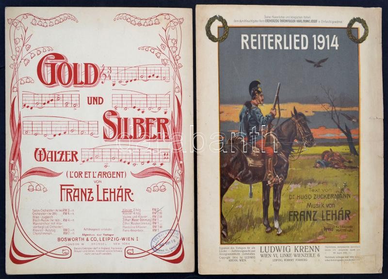 Lehár Ferenc: Gold und Silber, Reiterlied zongorára 2 db kottafüzet https://www.darabanth.com/de/359-Fernauktion/359.0/Kunst-Dokumente-andere-Sammelgebiete/Musik-Noten~500031/Lehar-Ferenc-Gold-und-Silber-Reiterlied-zongorara-2-db-kottafuzet~II2068302