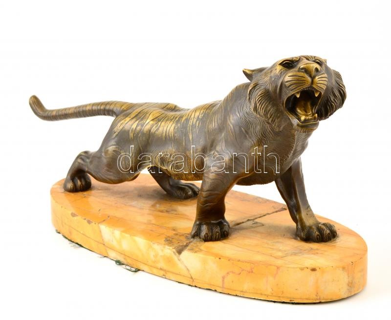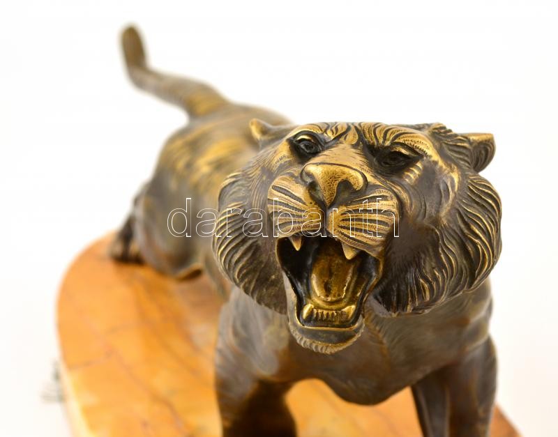 Jelzés nélkül: Üvöltő tigris. Bronz, törött márvány talapzaton, m: 17 ... https://www.darabanth.com/de/359-Fernauktion/359.0/Kunst-Dokumente-andere-Sammelgebiete/Skulpturen-Statuetten-Plaketten~500006/Jelzes-nelkul-Uvolto-tigris-Bronz-torott-marvany-talapzaton-m-17-cm-h-42-cm~II2065900