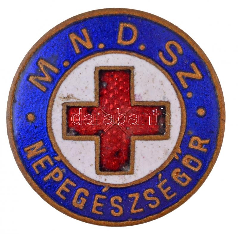 ~1950. "M.N.D.SZ. Népegészségőr" zománcozott jelvény (22mm) ... https://www.darabanth.com/de/359-Fernauktion/359.0/Numismatik/Faleristik-Auszeichnungen-Medaillen-Orden~2000018/7E1950-MNDSZ-Nepegeszsegor-zomancozott-jelveny-22mm-T2~II2063735