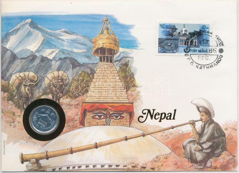 Nepal 1975. 5 Paisa in envelope with stamp and cancellation, with German description C:XF