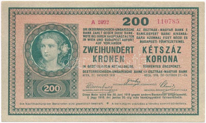 1918. 200K "A 2092" hullámos hátlappal T:I-,II https://www.darabanth.com/de/359-Fernauktion/359.0/Numismatik/Ungarische-Banknoten~2000007/1918-200K-A-2092-hullamos-hatlappal-TI-II~II2062320