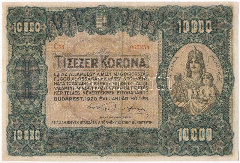 1920. 10.000K "Orell Füssli Zürich" piros sorozat- és sorszá... https://www.darabanth.com/de/359-Fernauktion/359.0/Numismatik/Ungarische-Banknoten~2000007/1920-10000K-Orell-Fussli-Zurich-piros-sorozat-es-sorszammal-TIII-restauralt-Adamo-K41~II2061411