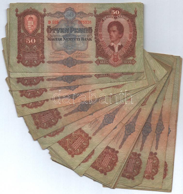 1932. 50P (28x) T:III,III- Adamo P14 https://www.darabanth.com/de/359-Fernauktion/359.0/Numismatik/Ungarische-Banknoten~2000007/1932-50P-28x-TIII-III-Adamo-P14~II2065902