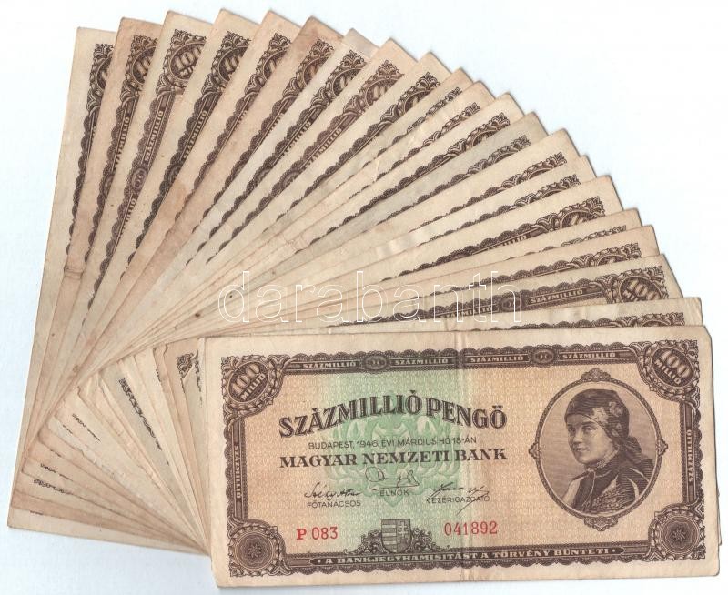 1946. 100.000.000P (21x) T:I--III Adamo P27 https://www.darabanth.com/de/359-Fernauktion/359.0/Numismatik/Ungarische-Banknoten~2000007/1946-100000000P-21x-TI-III-Adamo-P27~II2066217
