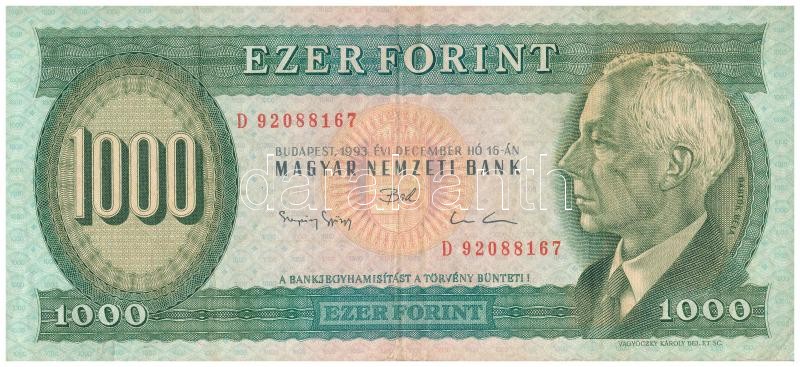 Adamo F47 https://www.darabanth.com/de/359-Fernauktion/359.0/Numismatik/Ungarische-Banknoten~2000007/1993-1000Ft-D-TIII--Adamo-F47~II2052122