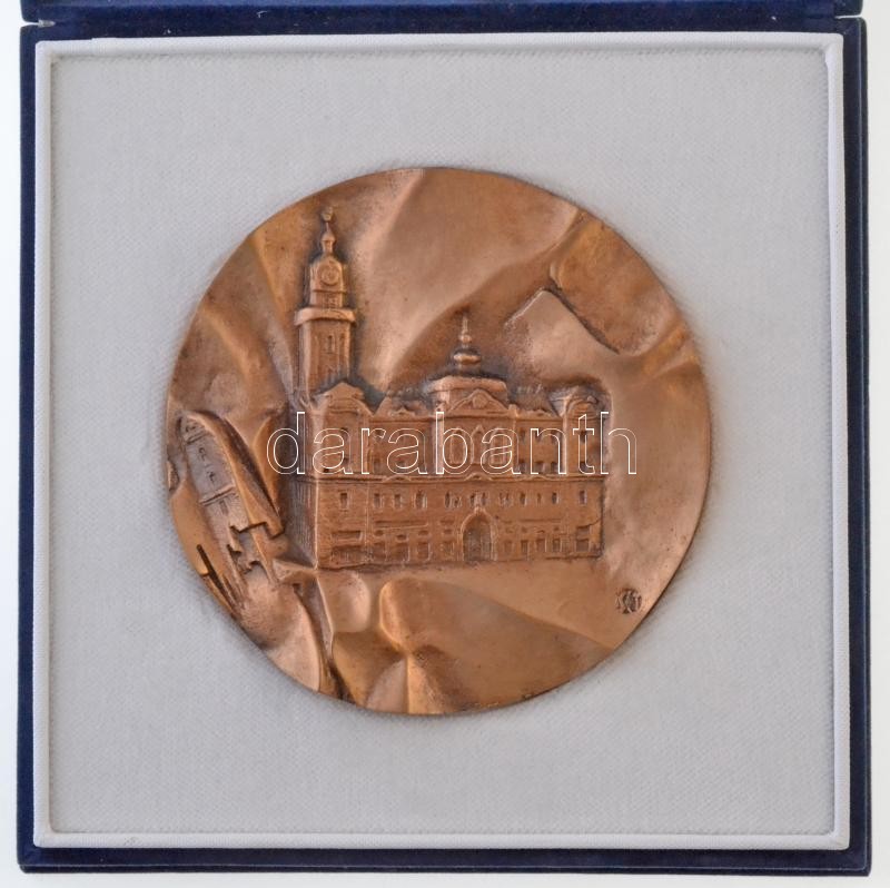 Beschreibung: Soltra E. Tamás (1955-) "Pécs Városháza Emlékérem" kétoldalas Br emlékérem, eredeti tokban (96mm) T:1-