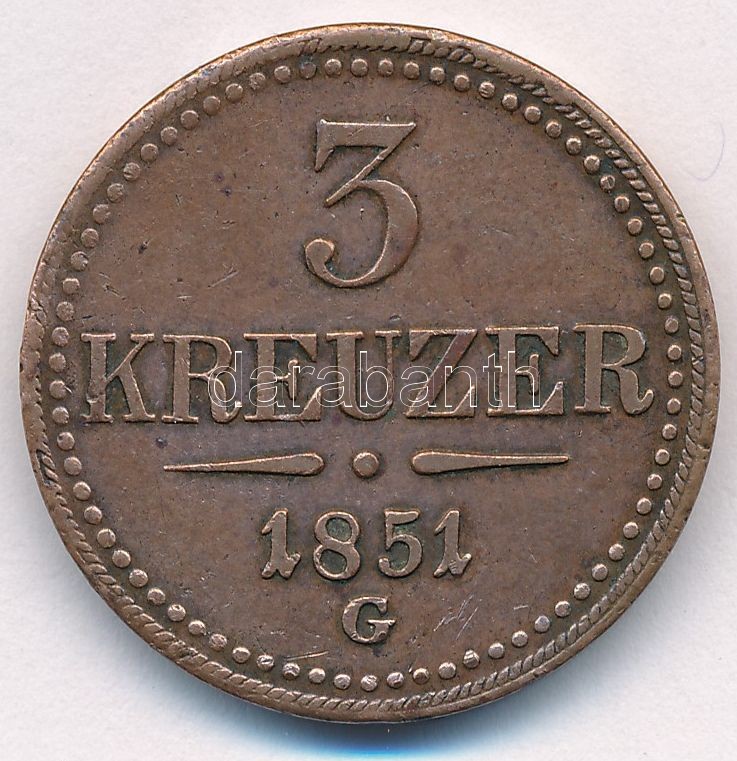 Adamo M6 https://www.darabanth.com/de/359-Fernauktion/359.0/Numismatik/Ungarische-Munzen-und-Munzen-mit-ungarischem-Munzzeichen~2000008/1851G-3kr-Cu-T2--Adamo-M6~II2062116