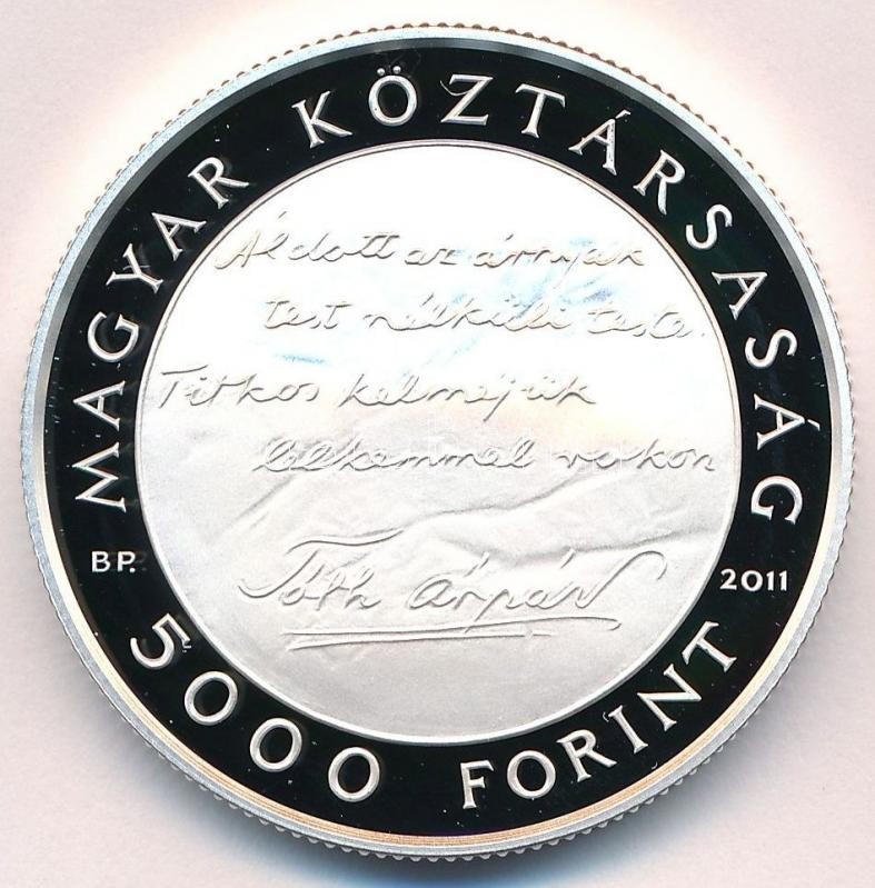 2011. 5000Ft Ag "Tóth Árpád" tanúsítvánnyal T:PP Adamo EM238 https://www.darabanth.com/de/359-Fernauktion/359.0/Numismatik/Ungarische-Munzen-und-Munzen-mit-ungarischem-Munzzeichen~2000008/2011-5000Ft-Ag-Toth-Arpad-tanusitvannyal-TPP-Adamo-EM238~II2062295