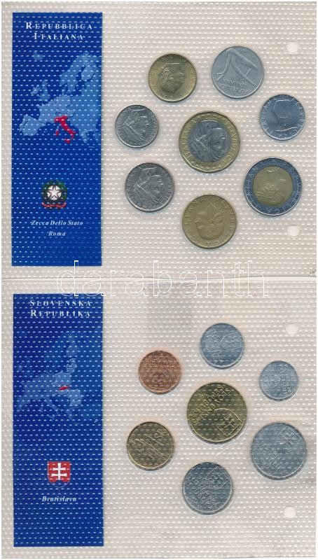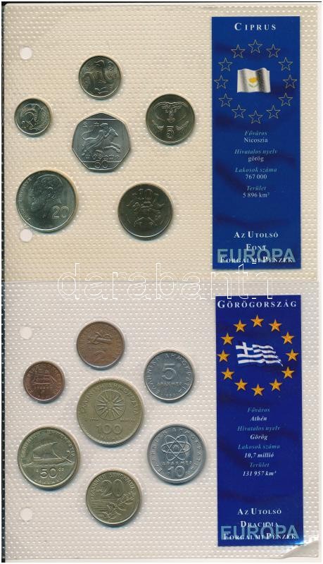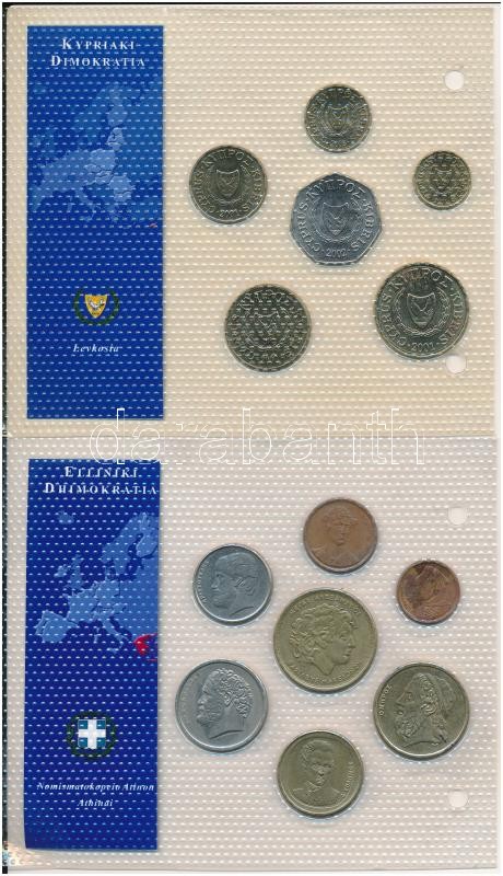 8db klf ország forgalmi érmei laminált tokban, közte Ciprus, Görögország, Lengyelország, Magyarország T:1-,2 két tok sérült és ragasztott 8pcs of diff coint sets in laminated packaging, including Cyprus, Greece, Poland, Hungary C:AU,XF two damaged and sticked