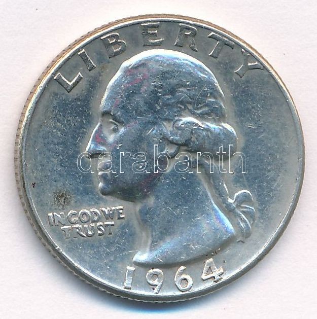 USA 1964. 25 Cents Ag C:XF https://www.darabanth.com/de/359-Fernauktion/359.0/Numismatik/Weltweit-Munzen~2000014/Amerikai-Egyesult-Allamok-1964-25c-Ag-T2-USA-1964-25-Cents-Ag-CXF~II2063851