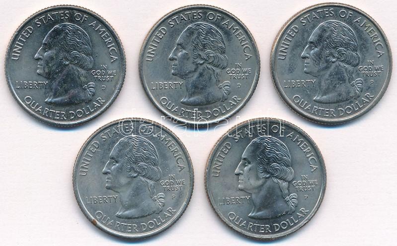 Amerikai Egyesült Államok 2005. 1/4$ "50 állam - Kansas, Minnesota, Nyugat-Virginia, California, Oregon" Cu-Ni (5xklf) T:1- USA 2005. 1/4 Dollar "50 States - Kansas, Minnesota, West Virginia, California, Oregon" Cu-Ni (5xdiff) C:AU