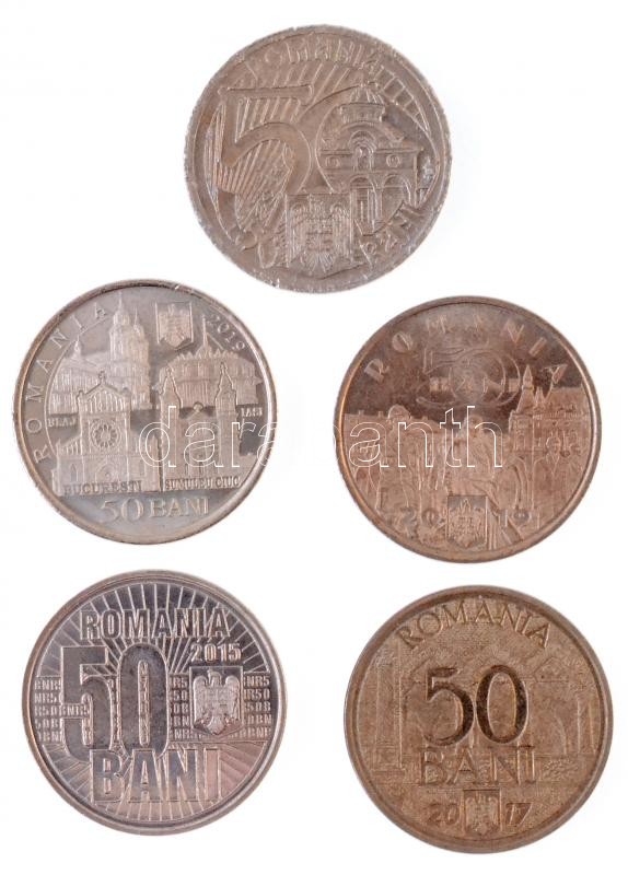 Románia 2005-2019. 50b (5xklf) forgalmi emlékkiadások T:1-,2 Romania 2005-2019. 50 Bani (5xdiff) commemorative issues C:AU,XF