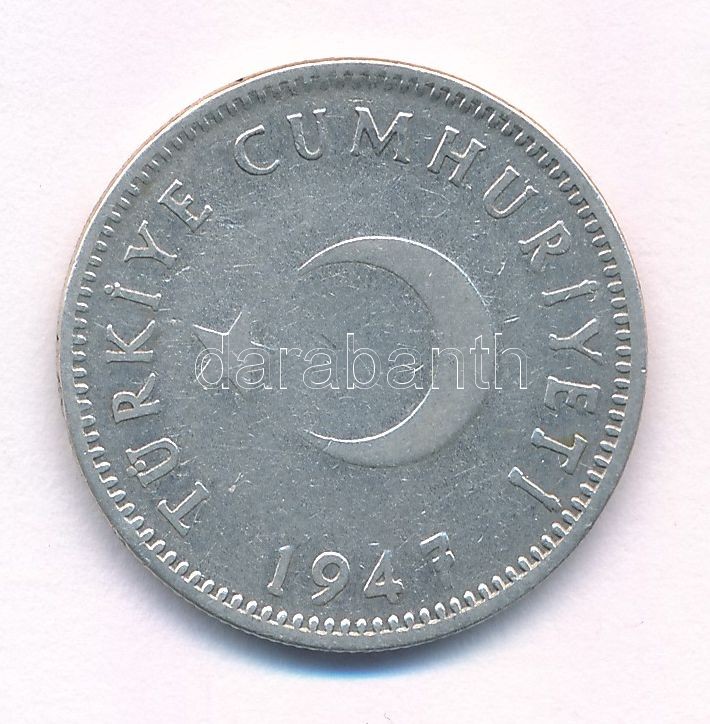 Turkey 1947. 1 Lira Ag C:XF https://www.darabanth.com/de/359-Fernauktion/359.0/Numismatik/Weltweit-Munzen~2000014/Torokorszag-1947-1L-Ag-T2--Turkey-1947-1-Lira-Ag-CXF~II2065850