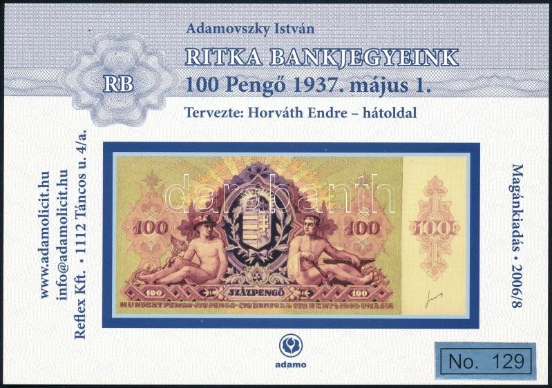 2006 Ritka bankjegyek 100P hátoldal emlék képeslap https://www.darabanth.com/de/359-Fernauktion/359.0/Philatelie-und-Postgeschichte-Ungarn/Paraphilatelie~500016/2006-Ritka-bankjegyek-100P-hatoldal-emlek-kepeslap~II2067170