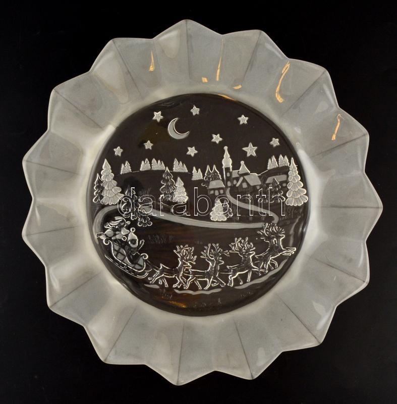 Beschreibung: Préselt, homokfújt karácsonyi, Mikulás mintás kínáló tál. d: 36 cm Hibátlan