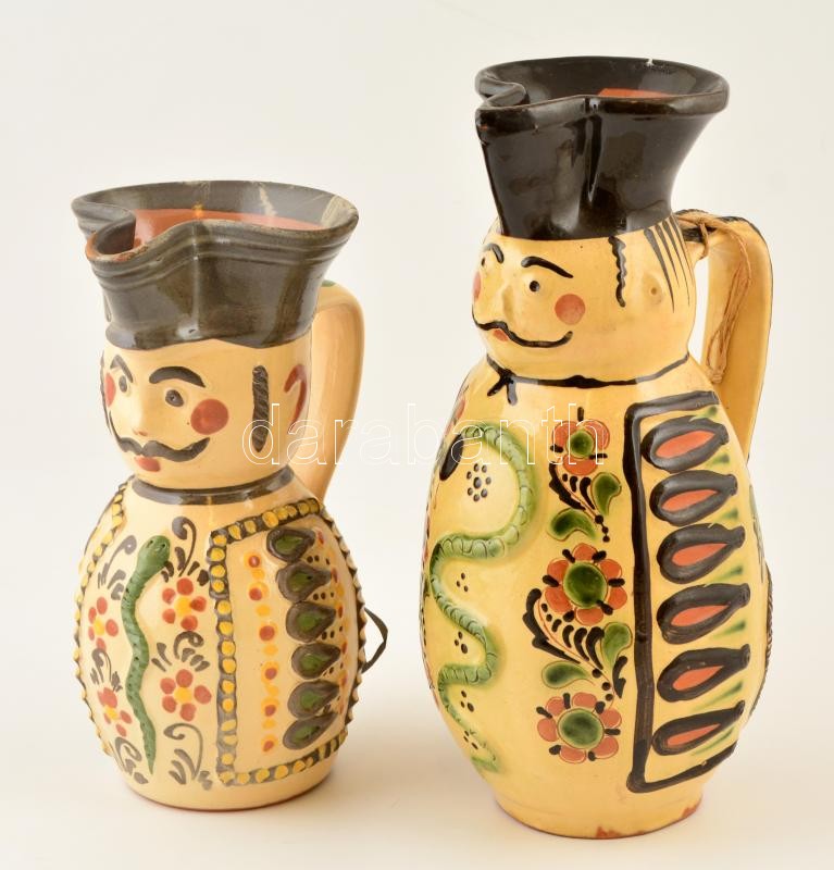 Beschreibung: 2 db Miska kancsó, egyik jelzett (Karcag), kopottak, m:23 és 28 cm