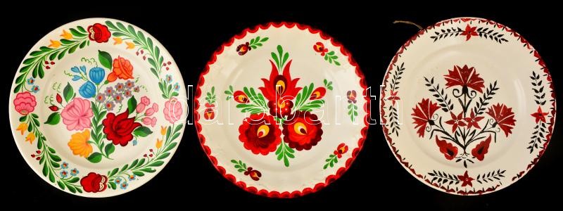 Beschreibung: Gránit népi tányérok (3 db), kézzel festett, jelzett ( 2db), apró máz hibákkal, d: 22,5 cm(3×)